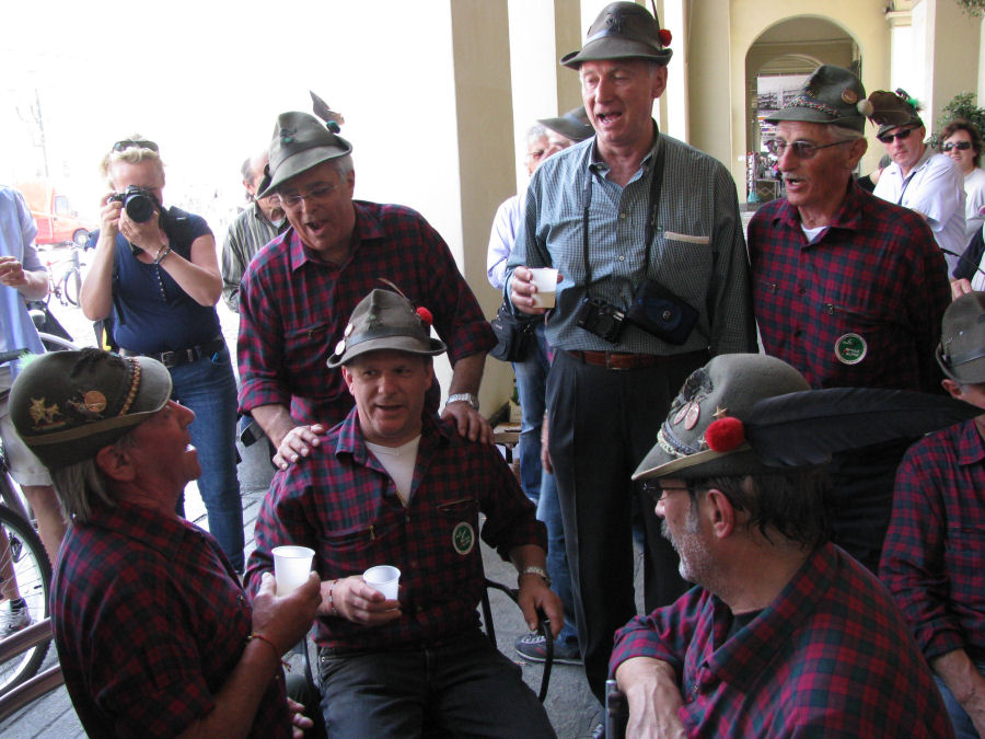 bar, ci lasciamo. Ed ecco il centro della città di Torino che si apre davanti a noi: Piazza Castello, Piazza San Carlo, i Giardini Reali, la Mole Antonelliana e tanti altri luoghi che meriterebbero di essere visitati con maggiore tempo a disposizione; ma ci accontentiamo. In Piazza Castello, poi, ci sono anche i preparativi del Gir d'Italia che prenderà il via da qui proprio oggi, ed a causa di ciò, nel pomeriggio non mancheranno alcuni disagi per attraversare la città, ma va bene anche così. Il pomeriggio passa quindi tra la tappa del Giro, le visite ai vari luoghi del centro cittadino, canti, brindisi, incontri con nuovi e vecchi amici, come sempre accade. Poi il rientro che, per alcuni, avviene a notte fonda. Ma domenica, anche chi ha fatto